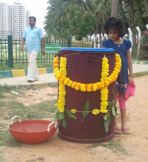 Puttenahalli Lake is not on BBMP’s list of lakes designated for Ganesha idol immersion. "Immersion of idols" is also on the list of Don’ts. But we are prepared! PNLIT has organized two different immersion points where water drums and flower collection baskets have been specially placed. A watchman and volunteers will also be on duty. Devotees who do turn up at Puttenahalli Lake will be asked to immerse their Ganeshas in the water drums at these points and save the lake!