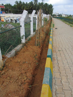 While waiting for the Diversion Channel pipes to arrive, the contractor got his men to start digging a trench and laying an Irrigation Pipeline all around the lake to facilitate watering the plants. At present we get water tankers to fill the tanks and the gardeners use the wheel barrow to ferry filled buckets to water our 320 trees, many shrubs and other plants. A laborious task to say the least not to mention an expensive one. The bore wells around the lake are recharged thanks to the lake but the well operators do not reduce their charge one bit! The Irrigation Pipeline will enable us to plant two more rows of trees on the slope, countless small flowering plants between trees on the embankment, shrubs, creepers, climbers and what have you to give ourselves a green nice cover in the neighbourhood.