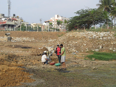 Their enthusiasm soaring high, Arvind Venkatadri from Brigade Millennium, Shankar Iyer from South City and Grishma from Jayanagar 4th block started work as early 6.15 a.m. this morning. Each working in his/her space, the only time they got together was to come out after a good one hour or so. By then, the other volunteers were assembling, ready to start work. We decided to water our little garden near the Gazebo and pluck out the weeds. A few women walkers saw us at work and joined us. How gratifying it is to know that more and more people are beginning to accept the lake as their own and are slowly taking a little responsibility for it.