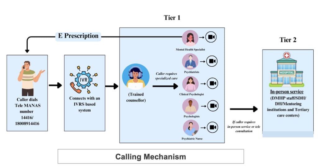To handle callers as per need, Tele MANAS follows a tier-based structure, ensuring appropriate triaging and continuity of care.