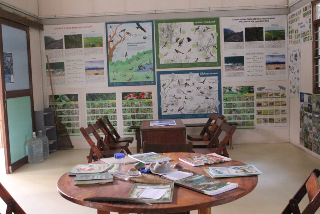 While Kuruvimedu tells the story of air in north Chennai, another unfolds 40 km away. At Olcott Memorial High School in Besant Nagar, the songs of birds and insects fill the forested surroundings. Inside the school’s Blue Green Centre (BGC), a smog plate lies covered in dust, leaves, and twigs; unlike in Kuruvimedu, fly ash is nowhere to be seen. The BGC, a collaborative effort between the Theosophical Society, Pitchandikulam Forest (Auroville), and Asian Paints, aims to provide environmental education to students.