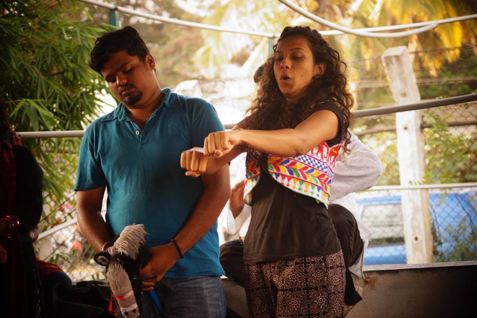 With Geetu and her friends becoming the characters in the play, no one in the slowly growing audience could remain aloof. Under the spell of the artistes, they became Keshavraju, the cheerful, large hearted boy and his mother who gifts him with a piece of wood instead of the drum that he yearns for. The rapt audience became in turn the grandfather, the potter’s wife, the washer man, the bridegroom and among others, even a horse all of whom he meets along the way. He gets his drum at last but the children and their parents didn’t want the fun to end. The versatile artistes obligingly led the group to sing a couple of songs together.