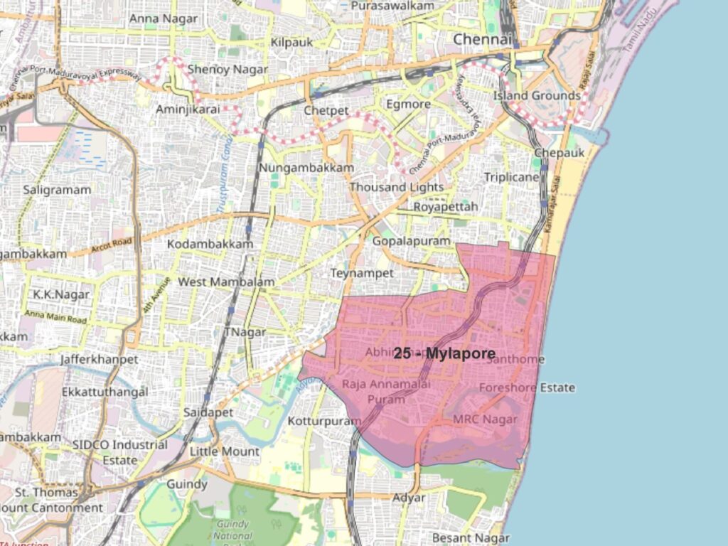 Mylapore is one of the 16 constituencies in Chennai, Tamil Nadu’s largest district, encompassing areas such as Alwarpet, Santhome, Raja Annamalaipuram, and F.S. Estate and Mandaveli. Steeped in history yet firmly rooted in the present, the constituency blends cultural legacy with contemporary urban life.