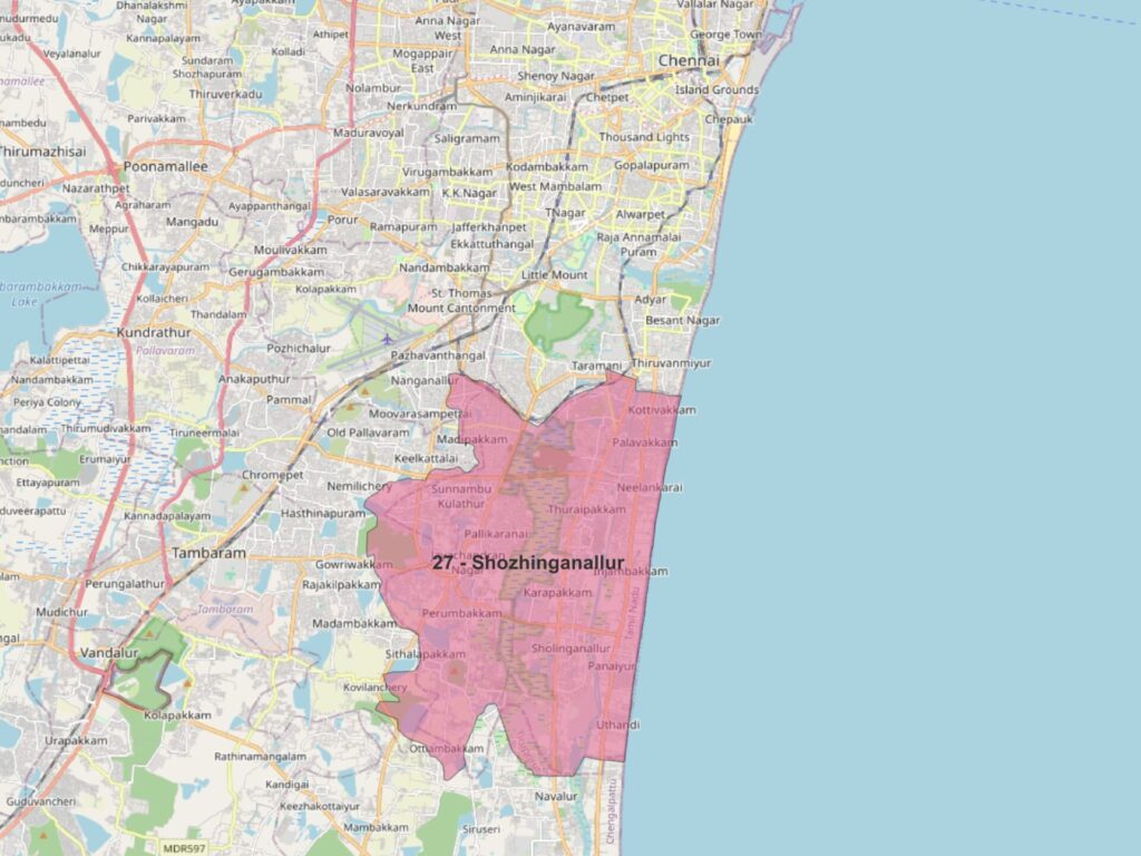 Sholinganallur, Tamil Nadu’s largest assembly constituency, remains a major IT hub struggling with a difficult “rurban” transition. It was formed in 2011 after the delimitation exercise. As of early 2026, rapid urbanisation has outpaced core infrastructure, leaving areas like Pallikaranai and Jalladianpet prone to severe monsoon flooding. The lack of a comprehensive underground drainage network leads to sewage overflows and stagnation. Despite its high revenue status, many neighbourhoods still lack piped water and sewage systems, forcing heavy reliance on water tankers.