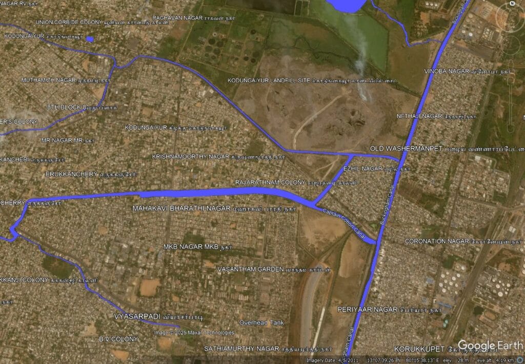 - Kodungaiyur canal considerably narrowed down because of rise in settlements in that area.