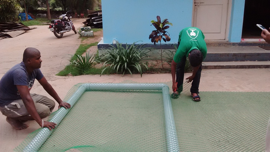 Jayanna fixing mesh to the frame