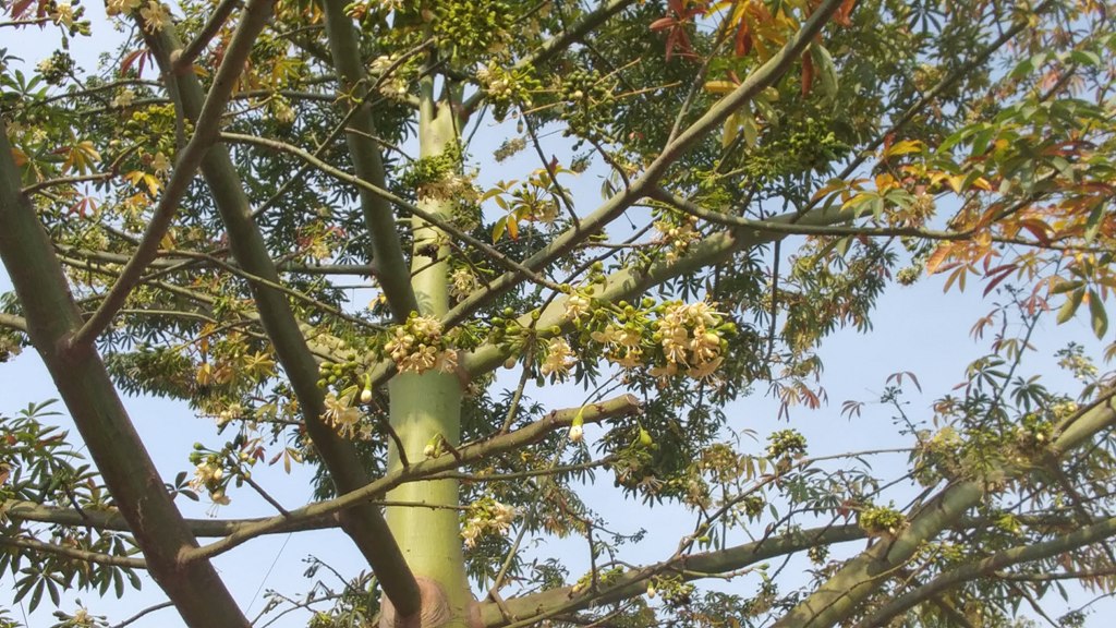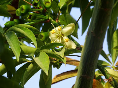 By the time it flowered, it had already become a young giant. Apparently, the Kapok tree can grow up to 150 ft! Fortunately, the space should be enough. Let it grow and flower all it wants. We’ve shifted our hope to another silk cotton we’d planted some years ago. It is yet to flower. To be on the safer side, Mr. Ramachandran got another batch of seeds, this time insisting on Bombax ceiba. For want of space, we have kept the seeds safe.